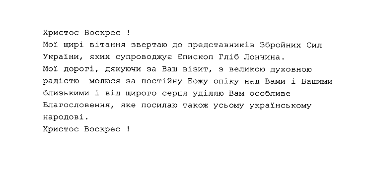 [Rivolgo un cordiale saluto al gruppo delle Forze Armate Ucraine, accompagnato dal Vescovo Mons. Hlib Lonchyna.