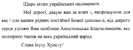 Carissimi, vi ringrazio per la vostra visita e, mentre invoco ben volentieri su di voi e sulle vostre famiglie la continua assistenza divina, cordialmente vi imparto una speciale Benedizione, che estendo all’intero popolo ucraino.