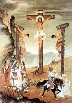 Via Crucis - Secolo XX Archivio Casa Generalizia S.V.D.- Roma TREDICESIMA STAZIONE Gesù muore sulla Croce V/. Adoramus te, Christe, et benedicimus tibi. R/. Quia per sanctam crucem tuam redemisti mundum. Dal Vangelo secondo Luca. 23, 46 Gesù, gridando a gran voce, disse: «Padre, nelle tue mani consegno il mio spirito». Detto questo spirò. MEDITAZIONE Gesù muore veramente, perché è vero uomo. Consegna al Padre lultimo respiro. Oh, comè prezioso il respiro! Il soffio di vita fu dato al primo uomo, è ridato a noi in modo nuovo dopo la risurrezione di Gesù, affinché siamo capaci di offrire ogni respiro al suo Datore. Quanta paura abbiamo della morte e come siamo tenuti schiavi da questa paura! Il senso e il valore di una vita sono decisi dal come la si sa donare. Già per luomo senza fede non è ammissibile che saggrappi alla vita perdendone il senso. Per Gesù, poi, non cè amore più grande di quello di dare la vita per lamico. Chi è attaccato alla vita la perderà. Chi è pronto a sacrificarla la conserverà. I martiri danno la più alta testimonianza del loro amore. Non si vergognano del loro Maestro davanti agli uomini. Il Maestro sarà orgoglioso di loro davanti a tutta lumanità nellultimo giorno. PREGHIERA Gesù, Tu hai preso la vita umana proprio per poterla donare. Indossando la nostra carne di peccato, Tu, Re immortale, sei diventato mortale. Accettando la morte più tragica e oscura, frutto estremo del peccato, Tu hai posto latto supremo di completa fiducia nel Padre. « In manus tuas, Domine, commendo spiritum meum ». Tutti: Pater noster, qui es in cælis: sanctificetur nomen tuum; adveniat regnum tuum; fiat voluntas tua, sicut in cælo, et in terra. Panem nostrum cotidianum da nobis hodie; et dimitte nobis debita nostra, sicut et nos dimittimus debitoribus nostris; et ne nos inducas in tentationem; sed libera nos a malo. Vidit suum dulcem Natum morientem desolatum, cum emisit spiritum. © Copyright 2008 - Libreria Editrice Vaticana |