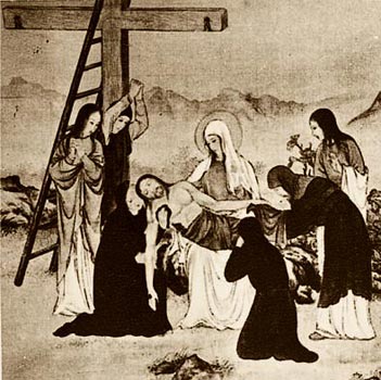Via Crucis - Secolo XX Archivio Casa Generalizia S.V.D.- Roma QUATTORDICESIMA STAZIONE Gesù è deposto dalla croce nel sepolcro V/. Adoramus te, Christe, et benedicimus tibi. R/. Quia per sanctam crucem tuam redemisti mundum. Dal Vangelo secondo Marco. 15, 46 Giuseppe dArimatea, comprato un lenzuolo, depose il corpo di Gesù dalla croce, lo avvolse con il lenzuolo e lo mise in un sepolcro scavato nella roccia. Poi fece rotolare una pietra allentrata del sepolcro. MEDITAZIONE Gesù ha scelto non di scendere vivo dalla croce, ma di risorgere dal sepolcro. Vera morte, vero silenzio, la Parola di Vita tacerà per tre giorni. Immaginiamo lo smarrimento dei nostri progenitori davanti al corpo esanime di Abele, la prima vittima della morte. Pensiamo al dolore di Maria, che accoglie sul suo seno Gesù ridotto a un cumulo di piaghe, verme piuttosto che uomo, non più capace di ricambiare lo sguardo damore di Sua Madre. Ora ella deve consegnarlo alle gelide pietre del sepolcro, dopo averlo affrettatamente pulito e composto. Ora cè solo da aspettare. Sembra interminabile lattesa del terzo giorno. PREGHIERA Signore, i tre giorni ci sembrano tanto lunghi. I nostri fratelli forti si stancano, i fratelli deboli scivolano sempre più giù, mentre i prepotenti si ergono spavaldi. Da perseveranza ai forti, Signore, scuoti i deboli e converti tutti i cuori. Abbiamo noi ragione ad avere fretta e pretendere di vedere subito la vittoria della Chiesa? Non è forse la nostra vittoria che siamo ansiosi di vedere? Signore, rendici perseveranti nello stare accanto alla Chiesa del silenzio e nellaccettare di scomparire e morire come il chicco di grano. Facci sentire sempre la Tua parola, Signore: « Non abbiate paura! Io ho vinto il mondo. Non manco mai allappuntamento. Sono con voi tutti i giorni sino alla fine del mondo ». Signore, aumenta la nostra fede! Tutti: Pater noster, qui es in cælis: sanctificetur nomen tuum; adveniat regnum tuum; fiat voluntas tua, sicut in cælo, et in terra. Panem nostrum cotidianum da nobis hodie; et dimitte nobis debita nostra, sicut et nos dimittimus debitoribus nostris; et ne nos inducas in tentationem; sed libera nos a malo. Quando corpus morietur, fac ut animæ donetur paradisi gloria. Amen. Il Santo Padre rivolge la sua parola ai presenti. Al termine del discorso il Santo Padre imparte la Benedizione Apostolica: BENEDIZIONE V/. Dominus vobiscum. R/. Et cum spiritu tuo. V/. Sit nomen Domini benedictum. R/. Ex hoc nunc et usque in sæculum. V/. Adiutorium nostrum in nomine Domini. R/. Qui fecit cælum et terram. V/. Benedicat vos omnipotens Deus, Pater, et Filius, et Spiritus Sanctus. R/. Amen. © Copyright 2008 - Libreria Editrice Vaticana |