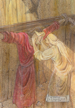 V. Adoramus te, Christe, et benedicimus tibi. De la seconde Lettre de saint Paul apôtre aux Corinthiens 4, 6 Le Dieu qui a dit : « Que des ténèbres resplendisse la lumière », est celui qui a resplendi dans nos cœurs, pour faire briller la connaissance de la gloire de Dieu, qui est sur la face du Christ. Au long du chemin de Croix, la piété populaire décrit le geste, plein de délicatesse et de vénération, d’une femme, comme une traînée du parfum de Béthanie : Véronique essuie le visage de Jésus. dans ce visage, défiguré par la douleur, Véronique reconnaît le visage transfiguré par la gloire ; sous les traits du serviteur souffrant, elle voit le plus beau des enfants des hommes. C’est ce regard qui suscite le geste gratuit de la tendresse et qui reçoit en récompense le sceau du saint visage ! Véronique nous enseigne le secret de son regard de femme, « qui cherche à venir à sa rencontre et à lui être une aide : voir avec le cœur ! »[19] Humble Jésus, Viens, Esprit de Vérité,