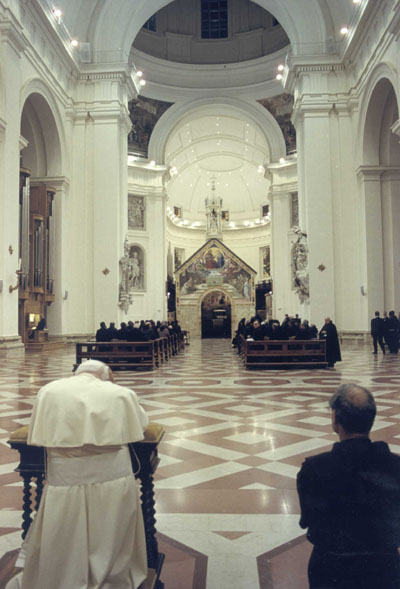 BREVE RIPOSO. Prima di lasciare l'Appartamento, il Santo Padre incontro S.E. il Signor Carlo Azeglio Ciampi, Presidente della Repubblica Italiana, con le Personalità al Suo Seguito. Saluto dei Religiosi della Comunità del Sacro Convento. |