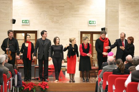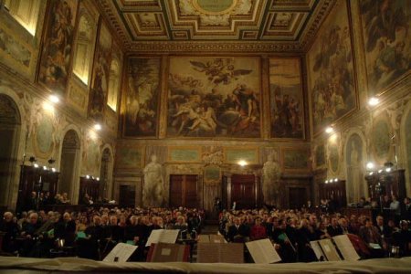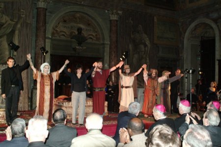 et deinde parvus grex istrionum quaedam poetarum antiquorum dixerunt carmina, interiectis aliquibus cantibus. Huius Certaminis quaedam exhibentur imagines photographicae. ANTONIVS SALVI CERTAMEN VATICANVM XXXXX       CERTAMEN VATICANVM XXXXIX     CERTAMEN VATICANVM XXXXVIII         CERTAMEN VATICANVM XXXXVII       |