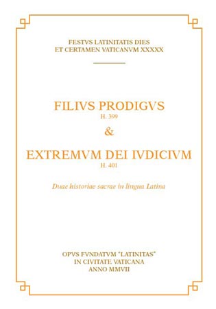 LATINITAS Opus Fundatum in Civitate Vaticana CERTAMEN VATICANVM LII INDICITVR Linguae Latinae cultoribus, ubicumque terrarum sunt, LII proponitur Certamen Vaticanum, quod in opusculis prosa vel astricta oratione compositis vertitur. Certamen die XXIX mensis Novembris anno MMIX in Urbe celebrabitur. Iis qui ad Certamen LII descendent, conceditur ut argumentum, de quo Latine agant, sibi ipsi eligant; praeoptantur autem argumenta ad res vel eventus huius aetatis pertinentia.