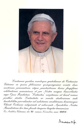 FESTVS LATINITATIS DIES ET CERTAMEN VATICANVM XXXXIX Ordo rerum agendarum SCRIPTA IN CERTAMINE VATICANO PRAEMIO HONESTATA FONTANA Fl., De primo Consulatu Hadriani LITTERAE LATINAE LIEBERG G., De Propertio inter elegiam amatoriam et carmen civile haesitante AETATIS NOSTRAE ACTA CARBONERO O., Probanda et improbanda - Exempla haudquaquam imitanda - Ridenda et ploranda - Accipienda et confutanda LATINITATIS SPECIMINA MARIANI S., Domine, ecce adsum VARIA ROSSI I.C., De Patre Suitberto CERTAMEN VATICANVM L INDICITVR EPISTVLARVM COMMERCIVM FREVNDORFER M., Martinus poeta Cleto Florindoque s.pl.d. - Martinus sodalis Cleto domino salutem dicit - Puellae et Magistrae Monacenses salutem dicunt Praesidi Operis Fundati "Latinitas" INDEX COMMENTATIONVM ANNO MMVI EDITARVM ERRATA CORRIGE LIBELLVS II