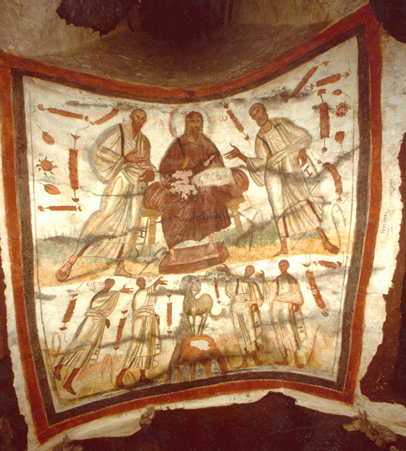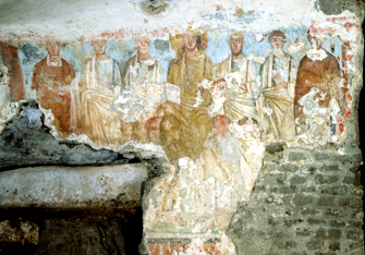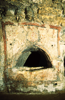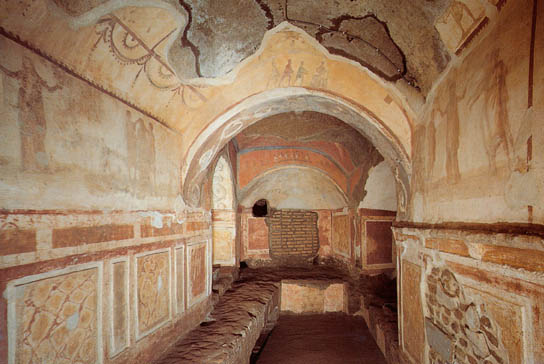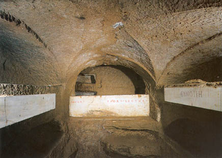 Il complesso di S. Callisto, fra il secondo ed il terzo miglio della via Appia antica, è costituito da aree cimiteriali sopra terra, con annessi ipogei databili già alla fine del II sec. d.C., in origine indipendenti fra loro e in seguito collegati a formare un'unica, vastissima rete catacombale comunitaria. Il complesso deve il nome al papa martire S. Callisto (217-222), che, prima del suo pontificato, fu preposto dal papa Zefirino (199-217) all'amministrazione del cimitero, considerato per eccellenza quello della Chiesa romana, luogo di sepoltura di numerosi pontefici e martiri. Delle molte strutture che occupavano il sopratterra, rimangono visibili solo due edifici funerari absidati: la tricòra orientale e quella occidentale. Quest'ultima ospitava probabilmente le sepolture di papa Zefirino e del martire Tarsicio.