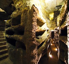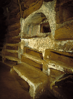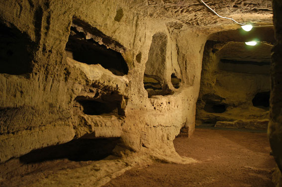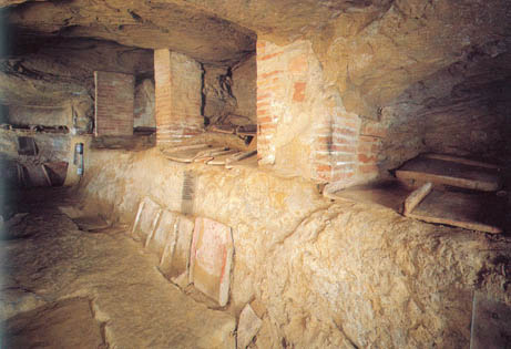 Catacomba del IV secolo, attigua alla chiesa romanica dedicata alla martire; il cimitero fu ricavato in cavità idrauliche e arenarie preesistenti, scavate nella roccia calcarea; la catacomba è soprattutto importante per la particolare architettura funeraria, caratterizzata da nicchioni in muratura e da serie di tombe costruite una sopra l'altra su più piani paralleli.