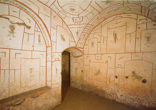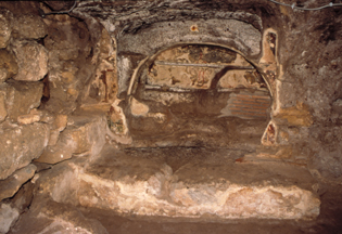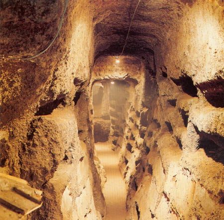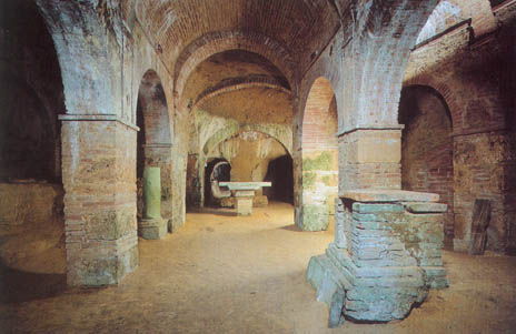 Catacomba del IV secolo, attigua alla basilica del martire, con resti pittorici e materiali di corredo; notevole la presenza di un sepolcro ad edicola con affreschi raffiguranti gli apostoli Pietro e Paolo.