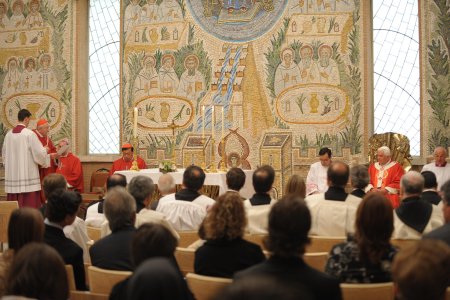 SALUTO DELL'EM.MO. SR. CARD. ENNIO ANTONELLI AL SANTO PADRE, BENEDETTO XVI  Questo il testo che il Cardinale Ennio Antonelli, Presidente del Pontificio Consiglio per la Famiglia, ha rivolto, giovedì mattina 23 aprile 2009, al Santo Padre all’inizio della Santa Messa: Padre Santo: Junto con el Señor Cardenal Norberto Rivera Carrera queremos expresarle nuestro profundo agradecimiento por el don de esta celebración eucarística para el grupo de nuestros principales colaboradores, en la organización y realización del VI Encuentro Mundial de las Familias en la Ciudad de México. Ellos han venido en peregrinación a Roma con sus familiares y Usted les acoge en su casa, en esta capilla inundada de luz y de relucientes mosaicos, ofreciéndoles la experiencia de un encuentro extraordinario que no olvidarán nunca. Gracias, Padre Santo, a nombre de todos ellos. Gracias, especialmente, a nombre de los señores Graciela y Pedro Villaseñor que celebran hoy 65 años de matrimonio y a nombre de una pequeña, Mónica Paxson, que hoy recibirá por vez primera el augusto sacramento de la comunión eucarística. La familia de Enrique y Martha Gómez Serrano, miembros de nuestro Dicasterio, que trabajaron intensamente para el éxito del Encuentro Mundial, no ha podido participar en esta peregrinación, ya que como usted sabe, Santo Padre, Enrique, está gravemente enfermo. Para él, para su familia y para todos nosotros orar con el Papa es motivo de consolación, de energía y de paz. El amor del Papa es para todos nosotros signo del amor del Señor Jesús y hoy nos lo hace experimentar de modo concreto e intenso. Por este motivo estamos sinceramente agradecidos y le expresamos nuestra profunda alegría y afecto. |