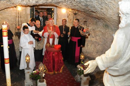 PONTIFICAL COUNCIL FOR THE FAMILY VISIT TO THE GROTTO OF SAINT PAUL Rabat, Malta Saturday, 27 June 2009 Very Reverends Archpriest, Father Louis Suban, and Canons of the Collegiate Church of Saint Paul, Reverend Priests and Religious, Dear brothers and sisters in Christ, I wish to greet you with Saint Paul’s words: “Grace to you and peace from God our Father and the Lord Jesus Christ” (Rom 1:6). As the year dedicated to the great Apostle comes to its end, it is most fitting that, as Special Representative of His Holiness Pope Benedict the Sixteenth, I meet you for the first time, beloved people of Malta, here at Saint Paul’s Grotto in Rabat. With joy I bring you His Holiness’ apostolic prayerful wishes and blessing. A few moments ago, I had the privilege of descending into the Grotto, - a place venerated for many centuries and which the Knights of St John promoted as a place of pilgrimage. Like our beloved Pope John Paul II, I have been able to meditate at that site where Tradition says Saint Paul lived, just outside the walls of the chief city of Melita. How fitting it is that we gather where Paul celebrated the Eucharist with the first Christian community of Malta, and where he preached during his three months stay in this country. Dear people of Rabat and of this country, you are successors of Paul’s converts, my message to you is that you continue in their love and faithfulness to Christ’s Eucharist and Word. In the name of Jesus Christ: pay heed to God’s Word, especially as proclaimed on Sunday. Let it guide you in your decisions and inspire the life of your families. Devoutly participate in the Eucharist. In this way you will receive evermore Christ’s spirit and his love, enabling you to grow in ecclesial communion and in your love for God and neighbour, according to the teaching of Paul: “There is one bread, and so we, though many, are one single body, for we all share in the one bread” (1 Cor 10:17). I greet you with much affection, while bearing profound admiration for your historic faithfulness of the Gospel: may Almighty God bless you, the Father, the Son and the Holy Spirit!  Cardinal Antonelli in St Paul's Grotto  Cardinal Antonelli during a moment of prayer in St Paul's Grotto |