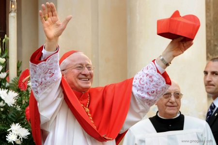 H.E. Cardinal Ennio Antonelli greeting the people outisde Saint John's Co-Cathedral in Valletta where the Pontifical Mass to mark the closure of the Pauline Year was held.