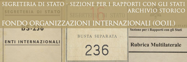 I primi documenti di questo Fondo (già Rubrica BS 236 Organismi Internazionali, Archivio Internazionale e Rubrica Multilaterale) risalgono alla seconda metà del XIX secolo. Il Fondo “Organizzazioni Internazionali” (inizialmente inserito nell’Archivio della Sezione per gli Affari Generali della Segreteria di Stato) nasce con la raccolta delle carte di carattere internazionale, denominata Busta Separata 236-Organismi internazionali. Il Fondo, collocato separatamente, assunse il nome di “Archivio Internazionale”. Con la Costituzione Apostolica “Pastor Bonus” (1988) e l’intensificarsi dell’attività multilaterale della Santa Sede, dal 1° gennaio del 1991 le competenze sugli enti e i congressi internazionali furono affidate alla Sezione per i Rapporti con gli Stati della Segreteria di Stato, che già conservava altre carte di natura internazionale, archiviate nel Fondo della “Sacra Congregazione degli Affari Ecclesiastici Straordinari”, e successivamente in quello del “Consiglio per gli Affari Pubblici della Chiesa”. Nel 2005 per “l’Archivio Internazionale” si adottò la denominazione “Rubrica Multilaterale”. Ora, in vista della consultazione delle carte da parte degli studiosi (fino al 10 febbraio 1939) è stata precisata in Fondo “Organizzazioni Internazionali”. La parte del Fondo “Organizzazioni Internazionali” attualmente consultabile è composta di 224 Buste d’Archivio, corrispondenti a ca. 22 metri lineari. |