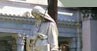 The imposing quadriportico, 70 meters long and composed of 150 columns, planned by Poletti, was concluded by Calderini. A colossal statue of Saint Paul stands right at the centre of the atrium and was sculpted by Giuseppe Obici (1807-1878). The façade is decorated by mosaics which were done between 1854 and 1874 (based on the designs of Agricola and Consoni). They depict: in the lower section, Isaiah, Jeremiah, Ezekiel and Daniel and in the central section, the mystical Lamb surrounded by four rivers which symbolize the four Gospels, and by twelve lambs representing the twelve Apostles. In the upper section, Christ is situated between Peter and Paul. There are three main doors. At the centre [1], is the monumental door in green bronze made by Antonio Maraini, which was placed here in 1931; to its right is the new Holy Door [2], made of golden bronze, created by the sculptor Enrico Manfrini and erected for the Jubilee of the year 2000.