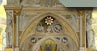 1) Cette grandiose mosaïque a subi des restaurations aux XVI°-XVIII° s., et après l’incendie du XIX° s., elle fut reprise en réutilisant une partie des anciennes tesselles. Des fragments originaux représentant des têtes d’apôtres, en particulier, sont présentés dans les Salles d’exposition permanente. 2) Remarquons le pape Honorius III, prosterné aux pieds du Christ. Le pape Paul VI se réfère à cette image, dans sa première allocution aux évêques du Concile Vatican II, le 29 septembre 1963 : « La majesté rayonnante de Jésus ressort du Pantocrator, comme dans vos basiliques, vénérables frères des Églises d’Orient et d’Occident. Et, nous- mêmes, nous nous reconnaissons dans la personne de notre prédécesseur, Honorius III, sur la splendide mosaïque de Saint-Paul-hors-les-Murs, représenté en adoration devant le Christ, de petite stature et prostré à terre pour baiser les pieds du Christ qui, grandiose, préside l’assemblée réunie dans la basilique, c’est-à-dire l’Eglise ». 3) Le riche et délicat ciborium gothique (1285), aux arcs trilobés en ogive, dont les niches cornières abritent Paul, Pierre, Timothée et Benoît, fut le point de départ d’un nouvel art figuratif. Il repose sur quatre colonnes de porphyre. 4) Le cloître adjacent au transept sud représente le sommet de l’art des Cosmati (atelier des Vassaletto, début XIII° s.). Le quadrilatère est formé d’une série de quatre colonnettes jumelées, toutes différentes, lisses, cannelées, torsadées, tressées, soutenant de petits arcs en plein cintre, surmontés d’un superbe entablement orné de mosaïques. 5) Le candélabre figure à partir du X°s. auprès de l’autel vide, durant la liturgie du Samedi saint. Le candélabre de Saint-Paul est un exemple exceptionnel des marbriers romains de la fin du XII°- début du XIII° s.: des scènes de la Passion et de la Résurrection voisinent avec un décor animalier et végétal. On lit les noms de Nicola d’Angelo et Pietro Vassaletto. |