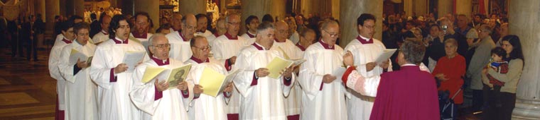 Le style polyphonique du grand musicien, en parfait accord avec les préceptes du Concile de Trente, fut capable de ramener les artifices en contrapuntiques des maîtres flamands à une limpidité et une élégance inégalables, jusqu’à obtenir une meilleure intelligibilité du texte sacré. Ses élèves et successeurs, Giovanni Maria Nanino, Francesco Soriano et Annibale Stabile s’inspirèrent de lui, en contribuant à former ce qui restera dans l’histoire comme l’“école romaine”. En fait, même au XVIIe siècle, période de grande exubérance de la musique sacrée, projetée dans les fastes des chœurs à plusieurs parties et du style orchestré vénitien, les maîtres romains surent se distinguer. Domenico Allegri et Paolo Quagliati encouragèrent grandement la participation instrumentale dans la musique sacrée, mais dans un style caractéristique d’effet monumental. D’illustres noms suivirent leurs traces, parmi lesquels Paolo Tarditi, Antonio Maria Abbatini, Orazio Benevoli, Nicola Stamegna et l’organiste Bernardo Pasquini. Maître de chapelle de 1677 à 1688, Francesco Foggia, à qui succéda son fils Antonio, est considéré comme le dernier grand représentant de l’école romaine proprement dite. Une figure nouvelle, Alessandro Scarlatti, contribua à donner de l’éclat à la basilique Sainte-Marie Majeure, en laissant son empreinte dans les deux seules années au cours desquelles il oeuvra.
