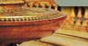 Los tres Reyes Magos con elegantes ropajes al estilo gótico y San José admiran atónitos y reverentes el milagro del Niño en brazos de la Virgen (de P. Olivieri) calentados por el buey y el asno.